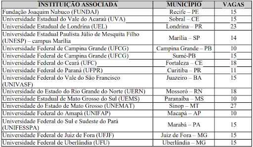 O ProfSocio oferece 246 vagas, distribuídas entre as Instituições Associadas, conforme o quadro a seguir: