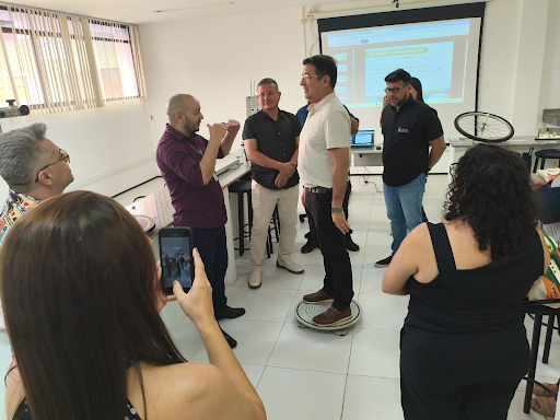 Na sequência, ocorreu uma dinâmica de integração, na qual os participantes foram divididos em 3 grupos e participaram de um circuito formativo pelos laboratórios da Coded/CED, organizados em 6 estações: