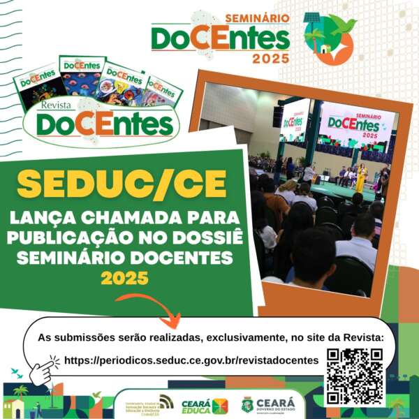 A Secretaria da Educação do Ceará (Seduc), por meio da Coordenadoria Estadual de Formação Docente e Educação a Distância (Coded/CED), em parceria com a Coordenadoria Pedagógica do Ensino Médio (Cogem), divulga as normas para a submissão de trabalhos no Dossiê da Revista DoCEntes 2026. Esta edição é exclusiva para publicação dos trabalhos apresentados no Seminário DoCEntes de 2025, cujo tema foi “A Educação na Promoção do Desenvolvimento Sustentável: contribuições dos Saberes Docentes”.