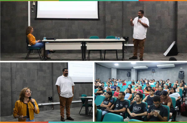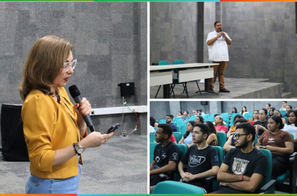 O evento finalizou no Auditório, com a conferência intitulada “O PIBID e a política estruturante da formação inicial de professores: tensões, disputas e limites do AvaliaPibid na regulação da política pública”, com a fala da professora Dra. Jaqueline Rabelo, da UECE, e mediação dos professores doutores da UVA Renato Almeida e Ermínio Nascimento.